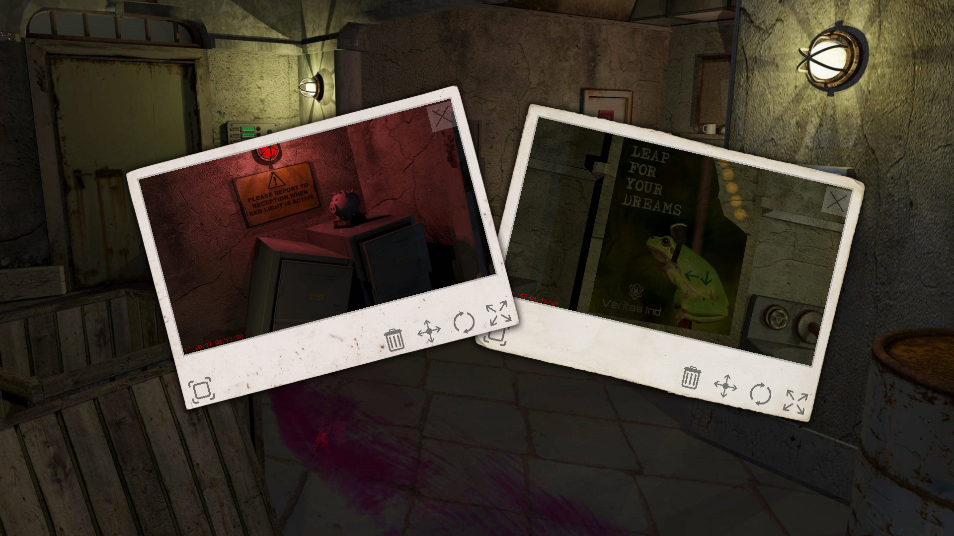 By utilising our not-patent-pending Glitch Camera you can take photos of everything in the game - be it posters, clues, walls, or disturbing blood stains - and use them later to help solve puzzles.